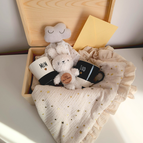 Cadou complet pentru nou-născut și părinți - Steluțe aurii -